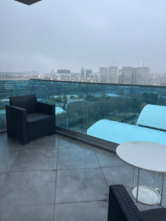 🔹 Terasă generoasă cu vedere spre lac și business district
