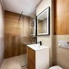 Baie cu geam natural și vas WC încastrat