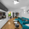 • Bucătărie open-space complet mobilată și utilată: frigider side-by-side, mașină de spălat vase, cuptor electric, plită gaz + 1 ochi electric, hotă retractabilă