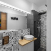 • Baie principală: WC, lavoar pe blat, cadă cu panou de duș, spații generoase de depozitare