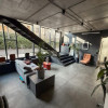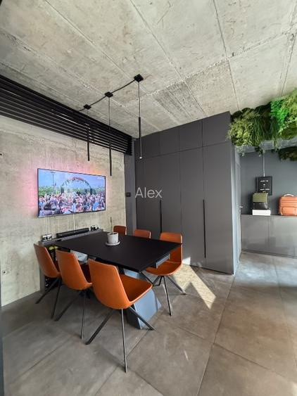 Parterul este open space, cu zone bine gandite pentru depozitare, iar la etaj gasiti o zona de birou cu usi glisante, o a doua zona cu masa extensibila pentru intalniri, iar mobila eleganta ascunde o chicineta complet mobilat. Tot la etaj avem un grup sanitar discret cu usa filomuro.